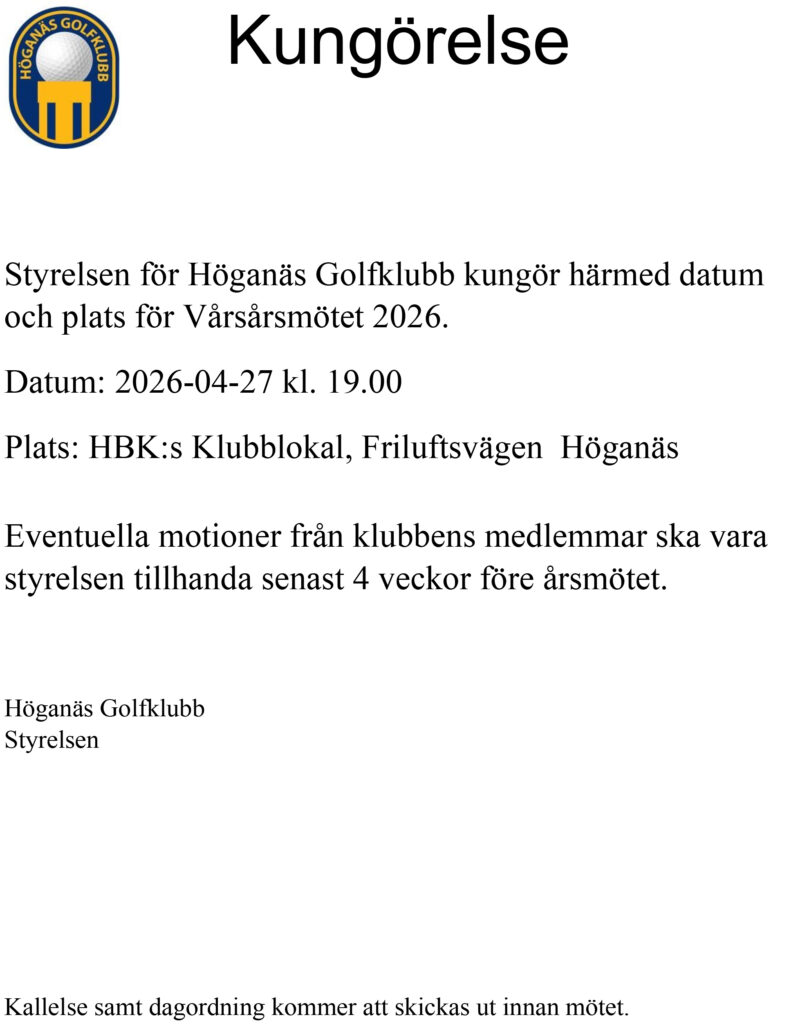 Höganäs GK Kallelse styrelsemöte